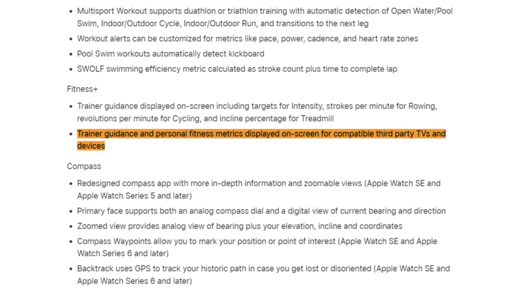投屏 Fitness + 至 Roku 时,惊喜的发现 Roku 会像 Apple TV 那样显示运动码表和健身圆环了。我立马翻了一下 watchOS 9 的更新文档,发现果然新增了:在适配的第三方电视等设备(Airplay)上显示训练者指南以及个人健身码表。过去这么久,Reddit 和苹果社区的一大堆没 Apple TV 的用户算是没白吐槽。